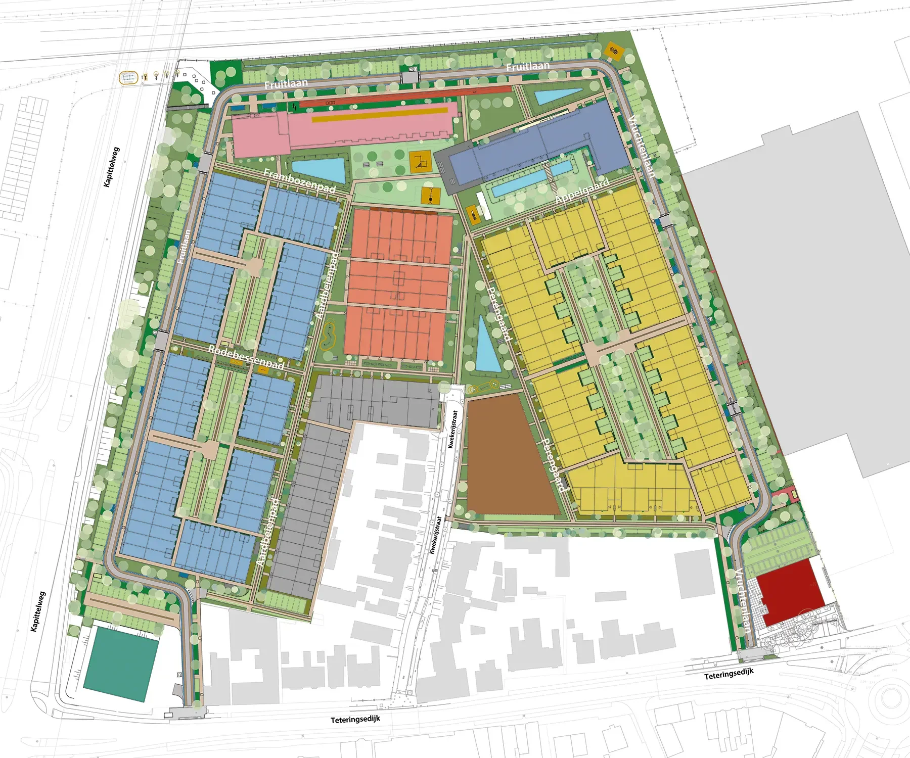Meer informatieIn deelgebied Avalon komen in totaal 65 woningen, verdeeld over twee fases. In de architectuur herken je dadelijk een kleine knipoog naar het industriële karakter van het voormalige fabrieksterrein. In het plan zijn twee hoofdlijnen zichtbaar die iets naar elkaar toelopen. Dit volgt de oude industriële bebouwing van het gebied. Aan de linkerkant vind je Avalon. De woningen liggen aan de Fruitlaan, Frambozenpad, Aardbeienpad en het Rodebessenpad. De wijk krijgt een overwegend groen karakter en is ontworpen met oog voor de toekomst, waarbij duurzaamheid, comfort en community centraal staan. Denk aan energiezuinige woningen, en indelingen die aansluiten op jouw moderne levensstijl. Grote raampartijen laten volop daglicht binnen, wat niet alleen je energierekening verlaagt, maar ook je humeur en productiviteit verhoogt. En met zicht op groen voor je deur, word je uitgenodigd om dagelijks een frisse neus te halen.